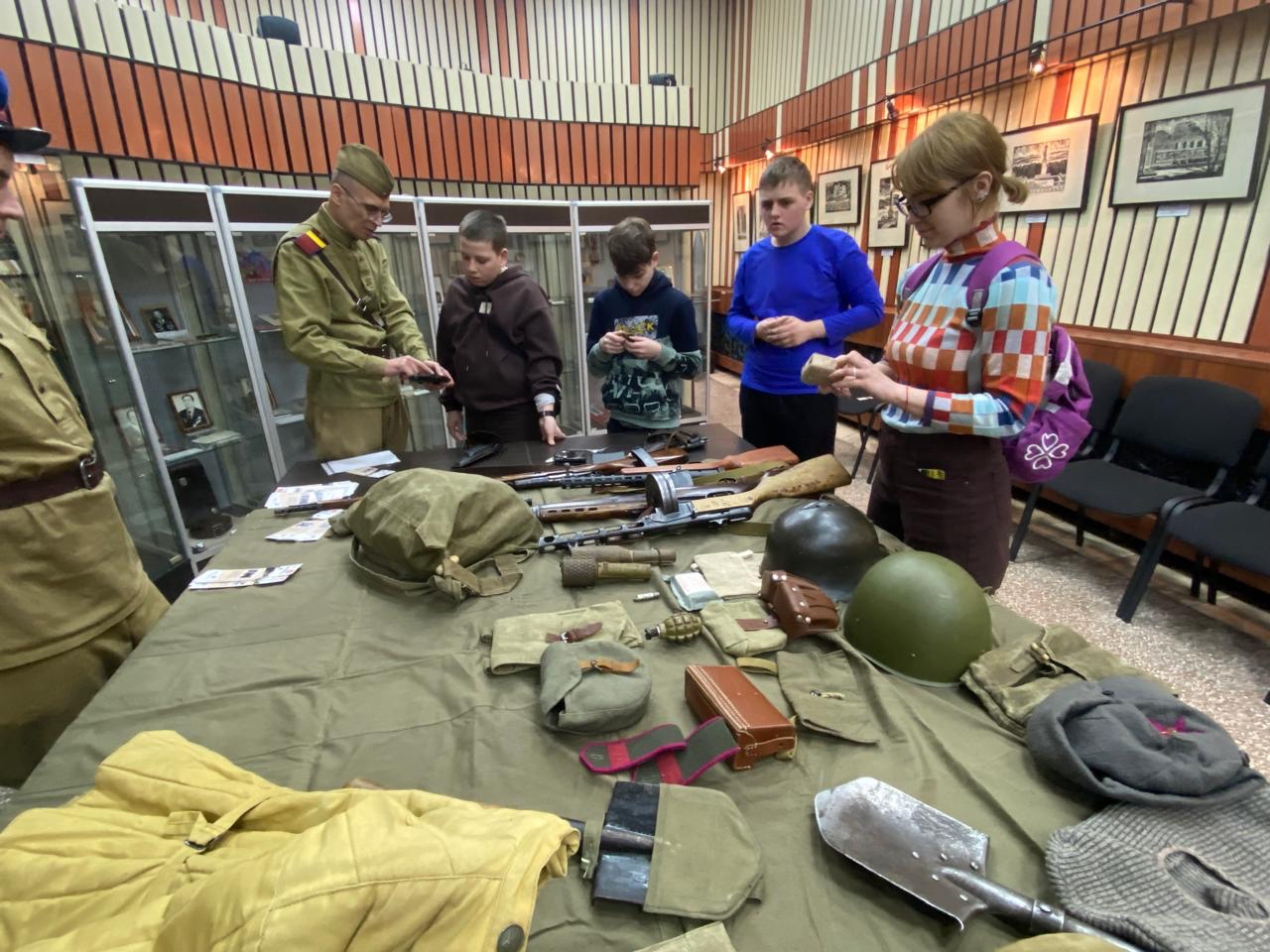 Винтовка Мосина, пистолеты-пулеметы Дегтярева и Шпагина, револьверы системы «Наган» и «ТТ», гранаты и многочисленные предметы солдатского оснащения – все это ребята смогли не только увидеть, но и подержать в руках, а обмундирование примерить!