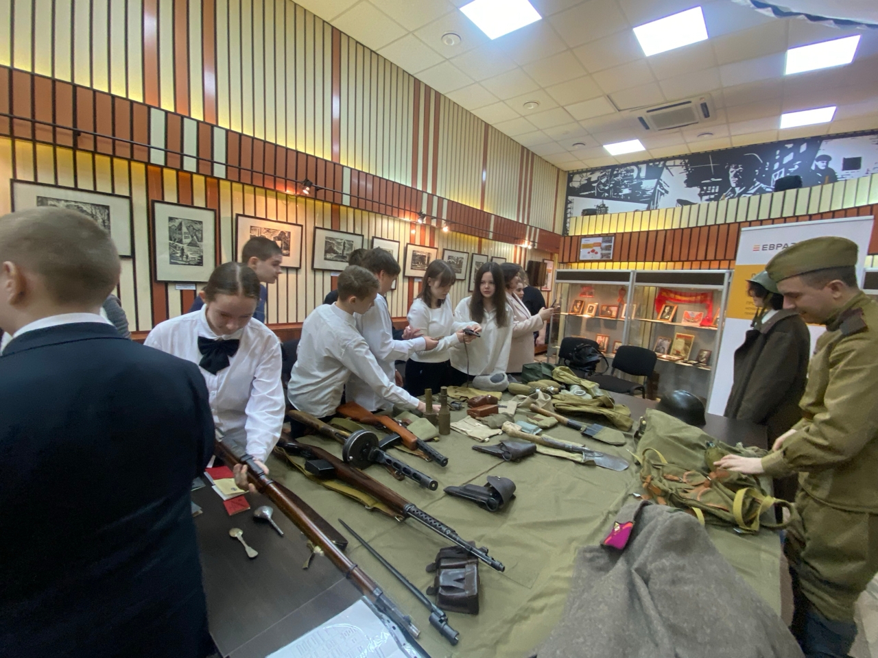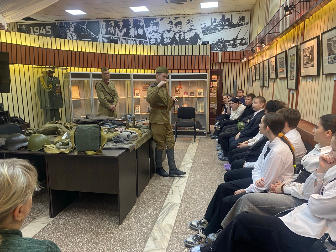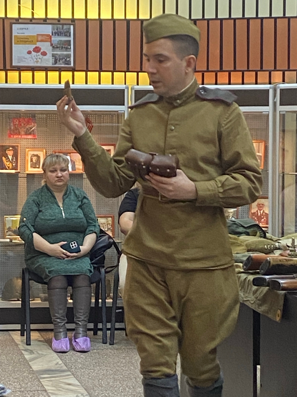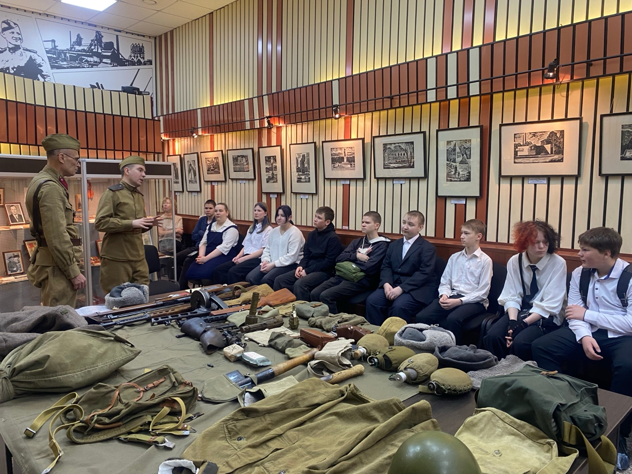 Об этом и многом другом учащимся 7 класса МОУ СОШ №66 рассказали Владимир Дунаев и Дмитрий Багаев - члены Военно-исторического клуба «Боевое братство» и Нижнетагильского отделения Российского Военно-исторического общества «Горный щит». 11 апреля в музее боевой славы металлургов уже в третий раз с неизменным успехом прошла интерактивная беседа «Фронтовой быт, снаряжение, вооружение пехоты РККА» в период 1938-1945 гг. Ребята с удовольствием воспользовались возможностью примерить подшлемник-балаклаву, каску, шинель и противогаз, подержать в руках легендарную винтовку Мосина и гранаты. В заключение – викторина о ключевых событиях Великой Отечественной войны и памятные сувениры! (при поддержке грантового конкурса ЕВРАЗа «Город идей-город друзей»).